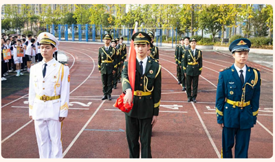 上午8时,在雄壮的国歌声中,鲜艳的五星红旗冉冉升起,迎风飘扬,全校师生肃立注目,高唱国歌,典礼在庄严的升旗仪式中正式开始。