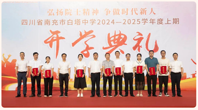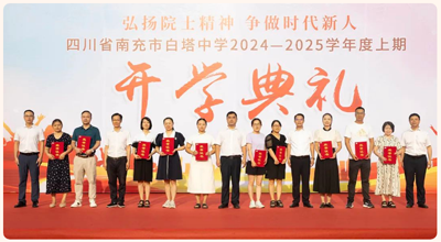 党委副书记何松涛宣读了学校获得市、区表扬的先进个人名单及《四川省南充市白塔中学关于表扬优秀教师、优秀班主任、优秀教研组长、优秀备课组长、教育科研先进个人、教坛新秀、优秀教育工作者的通知》后,与会领导为受表扬的同志颁发了荣誉证书。