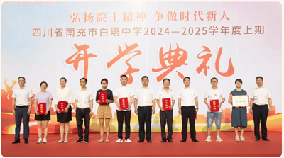 9月12日上午,四川省南充市白塔中学在学校田径场举行2024—2025学年上期开学典礼。白塔中学党委书记廖茂荣,党委副书记何松涛,副校长罗建军,工会主席王昌明,纪委书记佘洪,副校长任致远出席大会。大会由党委副书记何松涛主持。