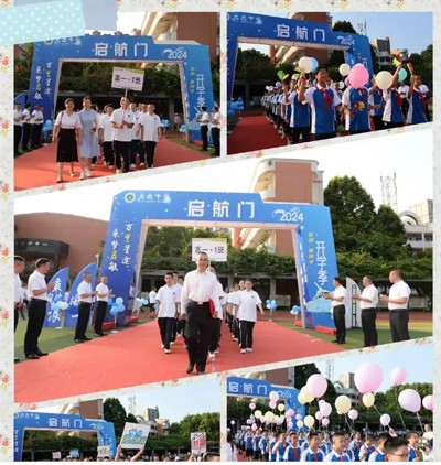 合着音乐的节拍,在全校师生的瞩目下,初高中新生在家长代表的带领下缓缓穿过启航门。聂长志书记和张家智校长从家长的手中接过学生,并交到年级分管领导和班主任的手中,共同开启新学期,迈向新征程。