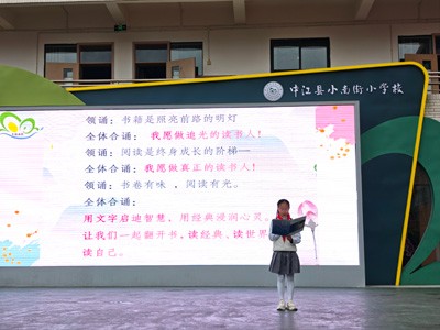 最后,廖书记语重心长地讲述了阅读的意义和重要性,期待全体师生以书为友,智慧学习,充实生活。中江县小南街小学“做一个真正的读书人”全民阅读活动在廖书记的激励下正式启动。