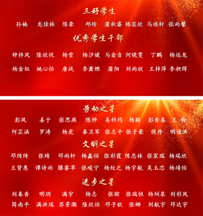 为表彰在过去的一学年中,品行优良、无私奉献、成绩优异的同学,学校特进行表彰。副校长包林宣读了2025年春季学期学业质量检测优秀学生、三好学生、优秀学生干部、进步之星、文明之星和劳动之星等表彰决定。