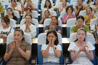 活动以“修父母智慧,育幸福孩子,做孩子成长路上的智慧引导者”为主题。主讲的伍老师通过生动实例和巧妙互动,将深刻的教育理念融入简单手势:两拳相对象征对抗,结果两败俱伤;一掌一拳代表包容,换来孩子的理解与欣慰;两掌相击则是鼓掌,寓意家校相互理解、彼此成就。这一直观比喻,让家长们深刻理解了有效沟通和包容的重要性。