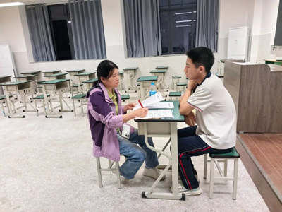 调研伊始,唐雪莲、王天美老师便与壹米滴答珍珠班的同学们展开了 “一对一” 深度交流。没有生硬的提问,只有亲切的倾听 —— 老师们坐在学生身边,像朋友般询问他们当下的学习情况、生活困扰,耐心倾听每一个孩子关于未来的畅想。