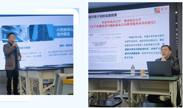 同时,南充市网链共享背景下“AI+双师课堂教学研培活动”在我校科教楼音乐厅和多功能厅同步举行。这次活动由四川省付入林名师工作室、四川省郭斌名师工作室、南充市教育技术装备所等多机构、组织共同组织,并由我校协办。在活动中,我校数学教师冯艳凤、嘉陵一中语文教师宋卓文分别用公开课的方式开启研培活动。付入林、郭斌随后开展课堂点评与讲座,介绍AI在教育领域的运用现状与广阔前景。