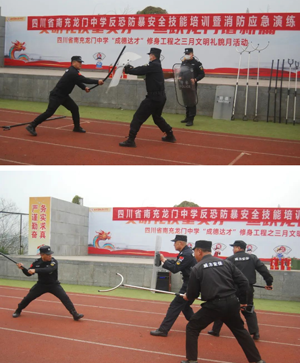 为进一步增强师生安全防范意识,提高自救和抵御外来侵害行为的能力,加强校园安全保卫工作,3月12日上午,四川省南充龙门中学携手嘉陵区特警大队开展了校园反恐防暴安全技能培训暨消防应急演练活动。学校党委委员、副校长张洪波,保卫处干部、班主任代表、门岗、宿管、食堂工作人员、护校队队员及班级安全委员参加活动。本次活动还得到了龙门派出所及南充师范校的专业指导和鼎力支持。