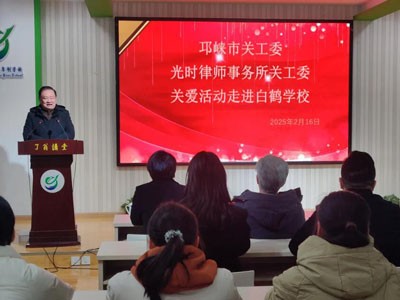 2月16日上午,邛崃市关工委、光时律师事务所关工委向白鹤学子捐赠仪式在我校了翁讲堂举行。出席此次活动的嘉宾有市关工委李怀忠主任、市关工委傅尚志主任、市关工委管义昌主任以及光时律师事务所王燕主任和3位爱心人士一行。