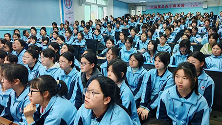 讲座最后,何老师寄语全体女生:珍爱自己,尊重他人,做自尊、自爱、自信、自强的阳光少女,让青春在安全与法治的护航下美丽绽放。