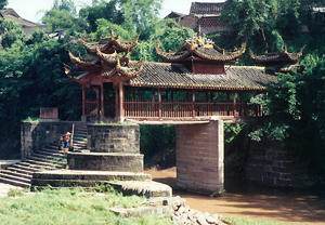 永济桥又称凉桥,位于沐川县沐溪镇(县城中心区),是沐川县境内保存的唯一一座石墩式木质廊桥。该桥始建于清乾隆三十年(1766年),据今已有256年历史。该桥桥长15米,宽3米,桥面距河面3米,河中做墩,墩高5米,桥上做楼亭,楼高7米,重檐歇山式屋顶。该桥于1986年被该县政府列为“县级文物保护单位”,1998年被市政府列为“市级文物保护单位”,2007年5月被省政府列为“省级文物保护单位”。