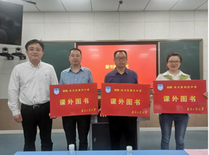 在捐赠仪式上,南京工业大学团委副书记乐凤,南京工业大学对外合作与发展处副处长、校友工作办公室副主任凌红,南京工业大学党委研究生工作部部长、研究生院常务副院长张广明,南京工业大学党委常委、副校长戴志晖分别将捐赠物资和基金送到黄丹小学、黄丹中学、利店中学代表手中。