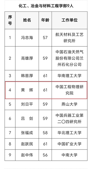 黄辉院士当选名单