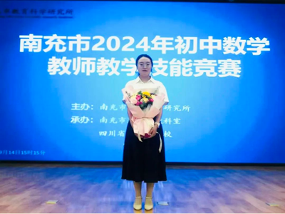 在刚刚结束的南充市2024年初中数学教师教学技能竞赛中,四川省南充市白塔中学赵勤老师荣获说课比赛全市一等奖第一名。