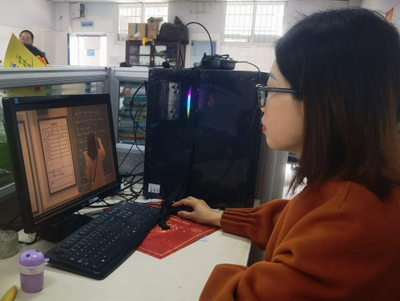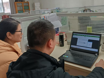 认真观看视频,用不同视角碰撞思想火花的罗小君老师和徐练淞老师。(四川省南充市白塔中学:教科室)