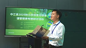 随后,中江县教育科学研究所体育教研员蒋濮任老师则围绕“体育课堂质量提升”,展开了一场系统而深入的专业引领。通过典型案例剖析与教学策略解析,他将高位的理论落地为可操作的方法,不仅为一线体育教师赋能,更为区域体育教学的高质量发展注入了坚实力量。