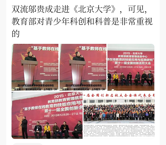 双流牧马山科创达人邬贵成 赴北大等五校分享科普经验 架川京教育交流桥