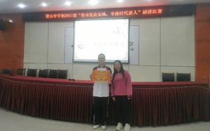 来自初2021级的15名同学参加了演讲比赛。参赛选手紧紧围绕“传承优良家风,争做时代新人”主题,以饱满的热情、感人的语言、丰富的内涵,多角度、全方位讲述着一个个平凡而感人的家风故事, 用朴实的语言传递出对中华民族传统美德的吸收与传承,用铿锵的声音表达争做时代好少年的坚定誓言。