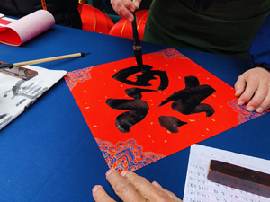 活动现场红红火火、暖意融融。书法老师及少年儿童书法爱好者挥毫泼墨,开笔送“福”,为现场的百姓带来了一份美好的新年祝愿。“中华振兴巨龙舞,大地焕然万象新”“人和家顺百事兴,富贵平安福满堂”“迎喜迎春迎富贵,接财接福接平安”……书法老师和少年儿童以饱满的热情,挥毫泼墨,写下了一幅幅寓意喜庆吉祥、歌颂幸福生活、寄托新春祝福的春联。