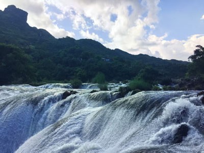 沿着蜿蜒如诗的小径缓缓前行,眼前的景象宛如一幅徐徐展开的山水画卷。远处,白水河恰似一条灵动的白色绸带,在翠绿的山峦间轻盈地蜿蜒穿梭。它宛如一位温婉的仙子,带着几分羞涩与矜持,在山间翩翩起舞。然而,当它行至那陡峭的悬崖峭壁之处,仿佛被大自然那神奇的画笔轻轻一点,瞬间化身为一条气势恢宏的白色巨龙。它昂首咆哮,以排山倒海之势,从高耸入云的悬崖上纵身一跃,向着下方的犀牛潭狂奔而去,那姿态,仿佛要将整个天地都揽入怀中。