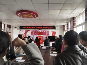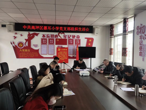 2月27日,南充市高坪区搽耳小学党支部在党员活动室召开组织生活会,党支部书记周祥同志主持会议,全体党员参加会议。