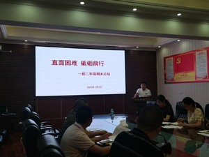 初一年级年级组长蒋乾宏从学生方面、教师方面、教育质量、存在问题和努力方向几个方面汇报了本学年的工作情况。初一年级针对学生特点,主要从端正学习态度、明确学习目的、严格学习行为、严肃学习纪律上下功夫,以培养学生学会做人、学会学习为目的,狠抓学生行为习惯的养成。年级分管领导下沉到班级,把对学生的考勤、仪容仪表、文明礼貌、卫生值日、纪律、两操等情况的检查全部纳入综合评价的工作中。在严格认真的管理下,整个年级发展态势喜人。