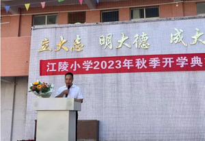 谆谆教诲,殷殷期盼。升旗仪式结束后,校长杨兵为新学期致辞。他首先向假期归来的同学们表示热切的欢迎,同时也对同学们提出了新学期的希望:一是争做文明守纪的好孩子;二是争当勤奋学习的好学生;三是争当一专多能的新时代少年。杨校长饱含深情的讲话让师生们备受鼓舞,全校师生将以主人翁的意识参与到江陵小学发展的新征程中,齐心协力开创美好的新篇章!