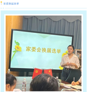 王未委员主持家委换届选举,因上一届幼儿毕业,家委会岗位出现空缺,经过家长推荐和举手表决,选出了本届家委会的会长及副会长。接下来,李芷涵爸爸作为家委会会长发言。