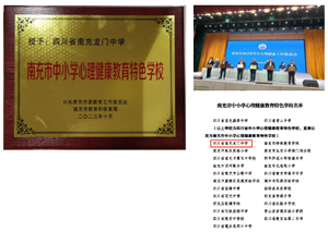 根据《南充市教育和体育局关于开展中小学心理健康教育特色学校创建活动的通知》(南市教体函〔2023〕13号)精神,经学校自查自评,县(市、区)教体局初评申报,专家组资料评审、现场评估,四川省南充龙门中学获评首批“南充市中小学心理健康教育特色学校”。10月10日,在南充市2023年学生心理健康工作推进会上,该校作为代表学校接受现场授牌。