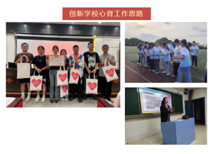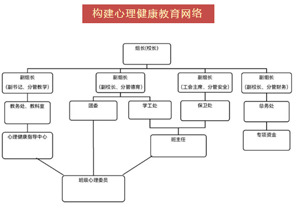 学校以用心呵护学生心理健康为工作出发点,形成了“以教育研究为先导,以人本教育为核心,以心理健康教育为特色”的教育教学模式,建立了由校长直接领导下的心理健康教育组织管理网络,形成了在校长领导下,科室协同、心理专职教师为骨干、班主任为主力军、全体教师共同参与、学生家长共同配合的心理健康教育网络。