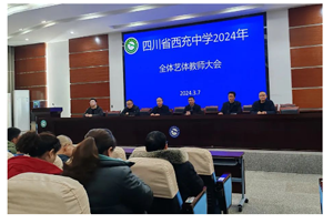 为深入推进四川省西充中学艺体学科的特色化和品牌化发展,促进艺体教师专业提升,艺体教学再上台阶,2024年3月7日,在学术厅召开了2024年新学期艺体教师工作会。会议由党委委员苏仕勇主持,校长董文军、副校长蒙胜庆,教务处、安保处、体艺卫处科室负责人及艺体组教师参加此次会议。