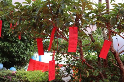 随着《骄傲的少年》旋律激荡,各班创意穿越“龙门”——粽叶飘香寓意“高中”,教师团身着红旗袍列队击掌,无人机俯瞰全场。学子将系着红丝带的心愿卡悬挂于“星辰大海”主题树下,操场化作赤诚的信念之海。