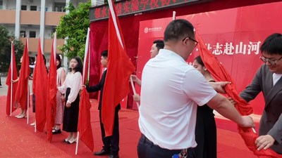 典礼高潮在战鼓声中迸发!校长向高三年级授“必胜战旗”,年级主任率班主任挥旗宣誓:“以笔为剑,以梦为马;决胜高考,为校争光!”千余名高三学子佩戴毕业徽章庄严承诺:“遵纪守法担责,分秒必争创辉煌!”