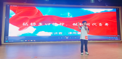 15号选手谭雨睿同学精神抖擞地站在舞台中央,目光坚定深邃。在《弘扬五四精神,做新时代青年》的演讲中,谭雨睿同学声音洪亮,逻辑严谨。她从巴黎和会外交失败引发五四运动的历史背景切入,深入剖析百年前青年学生为国家命运振臂高呼的精神内涵,紧密结合当下社会发展实际,全面探讨新时代青年传承五四精神的具体路径。演讲过程中,谭雨睿同学的肢体语言简洁有力,每一次有力的挥手都传递着坚定的信念,为台下同学清晰地指明了弘扬五四精神的方向。