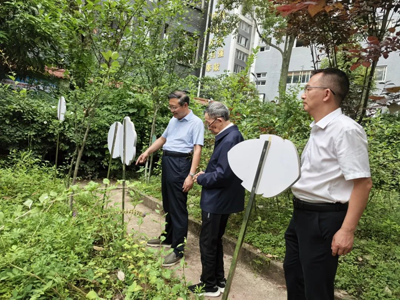 随后,谭教授和杨博士随校领导来到我校植物园,漫步于葱茏草木间,他们驻足凝望、颔首赞叹,触摸着亲手栽种的成长纪念树,凝视着学生培育的智慧农圃,每一处设计都彰显着“以自然为师”的育人哲思。谭教授由衷感概:植物园是营山学子“格物致知”的现货课堂——劳动教育、生态意识、科学精神,皆在这篇沃土中悄然生根发芽。