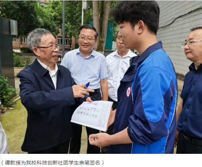 6月3日下午,谭教授怀着无比激动的心情来到了营山中学芙蓉校区,他凝望着家乡新建的一座座现代化教学楼,忽然笑着说:“当年翻墙偷渡的瓦房呢?如今孩子们踩着云梯读书了...”玩笑话归玩笑话,最后谭教授不忘勉励高三学子,学会心态调节:“每天留15分钟‘冥想式阅读’,借周恩来总理在南开时修身法,读《论语》养静气,诵《少年中国说》增豪情。