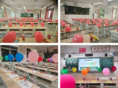 与此同时,2025级班主任们严阵以待,已精心布置好了教室。黑板上“欢迎新同学”的标语热情温馨,报到流程简洁明了,课桌上可乐、零食与粉红气球带给同学们了不小的惊喜……