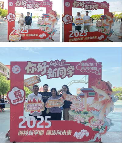 报到注册后,同学们或三两结伴,或父母陪同,来到鱼翔楼前、“鱼跃龙门”观景台、新校门等处打卡点合影留念。张张笑脸满既是对快乐的记录,又是对新征程的美好憧憬。