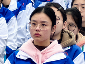 学生代表欧霞以青春的名义发声,呼吁同学们以“没有比人更高的山,没有比脚更长的路”的信念,苦战两百天,圆梦中高考。