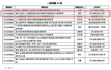 此次立项的3项课题为星级学科教研组培育专项重点课题《核心素养导向的中学数学实践性作业设计与评价研究》、一般课题《基于生成式人工智能的混合式高中英语写作教学设计与实践研究》和教育科研一般课题《基于南充三国文化资源的班级“忠义诚信”精神培育实践研究》。课题研究涉及数学教学创新、人工智能与英语教学融合、本土文化与班级德育赋能等多个领域,既紧扣“三新”改革、数智赋能教育的时代趋势,又深度融合南充本土文化特色,体现了学校教科研立足教学实际、破解育人难题的初心。