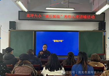 为关爱教师心理状态,助力六年级学生积极迎考,12月30日下午,南充市高坪第六小学开展了师生心理健康专题辅导活动。本次活动分为教师团队心理辅导与六年级学生考前心理辅导两个环节,旨在提升师生心理弹性,营造健康和谐的校园氛围。