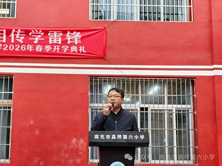 春风浩荡,万物竞发。3月9日上午,南充市高坪第六小学全体师生带着新春的喜悦与憧憬,齐聚校园,隆重举行2026年春季开学典礼。在庄严的国歌声中,五星红旗冉冉升起,校歌嘹亮唱响,新学期序幕正式拉开。