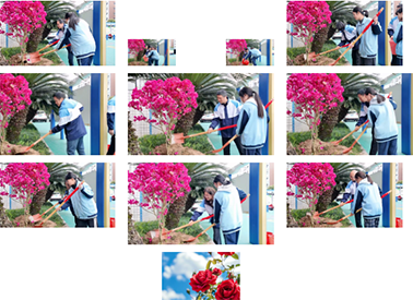 随后,学校开展“播种希望之树”环节,各班师生代表共同培土、浇水,以三角梅栽种寄寓中考美好愿景。