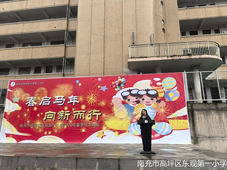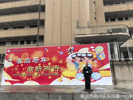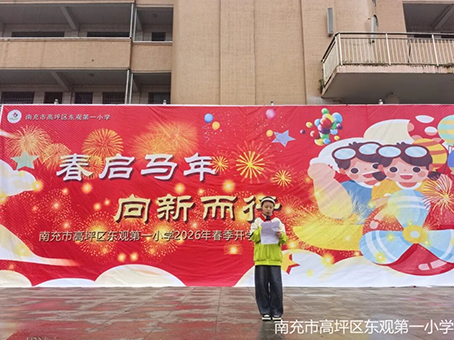 为凝聚奋进力量、树立榜样标杆、开启新学期崭新篇章,3月18日,南充市高坪区东观第一小学全体师生齐聚校园,隆重举行2026年春季学期“春启马年 向新而行”开学典礼。