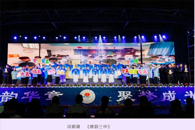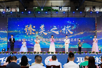 当晚19时,文艺汇演在璀璨灯光中拉开帷幕。高坪区委教育工委、区教体局、安汉教育督导室等相关领导应邀观看演出,高坪区委教育工委专职副书记徐小平发表了热情洋溢的讲话,他肯定了高坪三中近年来在教育教学中取得的优异成绩和“臻美至善,诗意发展”的教育理念,并祝愿艺术节取得圆满成功,高坪三中党总支书记张应龙也在晚会上致辞。