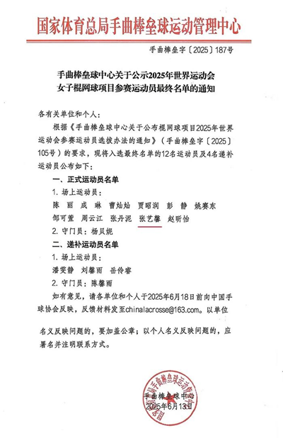 拼搏终有回响,2023 - 2025 年,张艺馨在国内外棍网球赛场掀起风暴,全国锦标赛冠军奖杯便是她实力的见证。如今,她荣耀入选中国棍网球女子队,站在新的起点上。张艺馨的传奇之路,是白塔中学育人理念的生动诠释,更是体育精神的闪耀丰碑。期待她在国际赛场再攀高峰,也相信白塔中学将培育出更多追光者,续写辉煌篇章。(四川省南充市白塔中学)