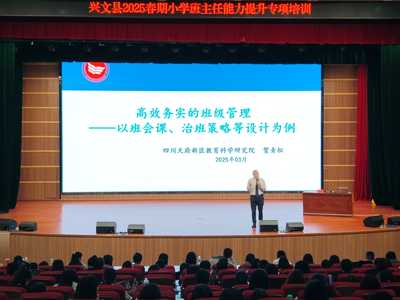 2025年3月27日,兴文县小学班主任能力提升培训在职业技术学校学术报告厅顺利举行,全县小学阶段的班主任500余人参加本次培训。
