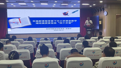 8月21日上午,宜宾市教育和体育局原总督学黄耀学作《新时代基础教育课程改革政策解读及应对策略》专题讲座。他结合实例,强调各学科教学应注重方法迁移,用清晰的语言传递核心知识,帮助参训教师把握政策、明确教学路径。