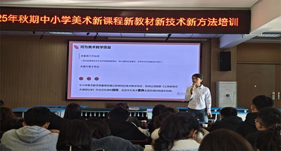 培训紧密围绕“深入研读美术新教材”这一核心主题,聚焦于“AI技术赋能美术教育”与“新教材教学设计”两大关键目标,通过课堂观摩、专题讲解以及互动点评等多种形式有序推进,引导参训教师深化理解、提升实践能力。