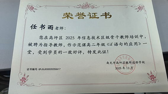 12月12日至13日,在高坪区教师进修学校主办的“名师领航?数字教学”跨区域专题培训上,南充龙门中学信息技术教师任书雨为师生们带来了一堂创意示范课。