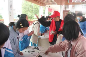 在子云学校识贤堂大厅,刘映强老师与学校师生们一起挥毫泼墨,共书传统经典。刘老师还在现场画了“梅、兰、竹、菊”四幅扇面,书写了“问道子云”横幅,让师生们感受到了传统文化的魅力。