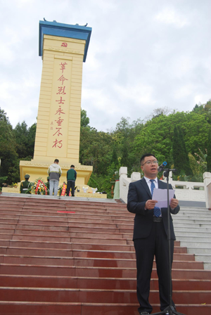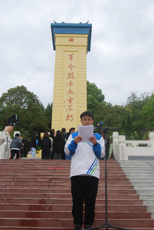 在高耸入云的烈士纪念碑前,学工处主任罗鹏做了主题讲话,表达对英雄们的敬仰,勉励同学们要心怀感恩之心,继承革命先烈们的优良传统,弘扬先辈们的爱国主义精神,积极进取,发愤图强,时刻准备着为祖国的繁荣富强而奋斗不息!同学们在深切的缅怀与寄思中,了解学习先烈们的奋斗精神,不断从先烈精神中汲取奋进的力量,立志奋发向未来!
